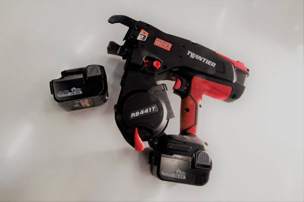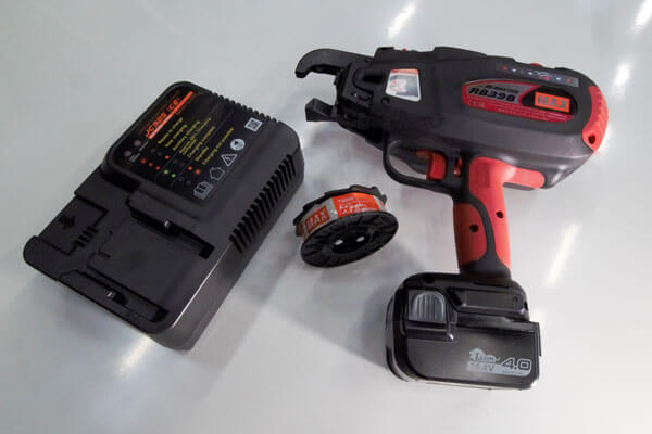 Hleðslutæki og 2 stk Li-ion rafhlöður fylgja með í tösku. Hleðsla á rafhlöðu endist að í binda 4.000 hnúta. Vélin getur bundið 2 x 20mm járn og bindur hnútinn á um 0,5 sek.
