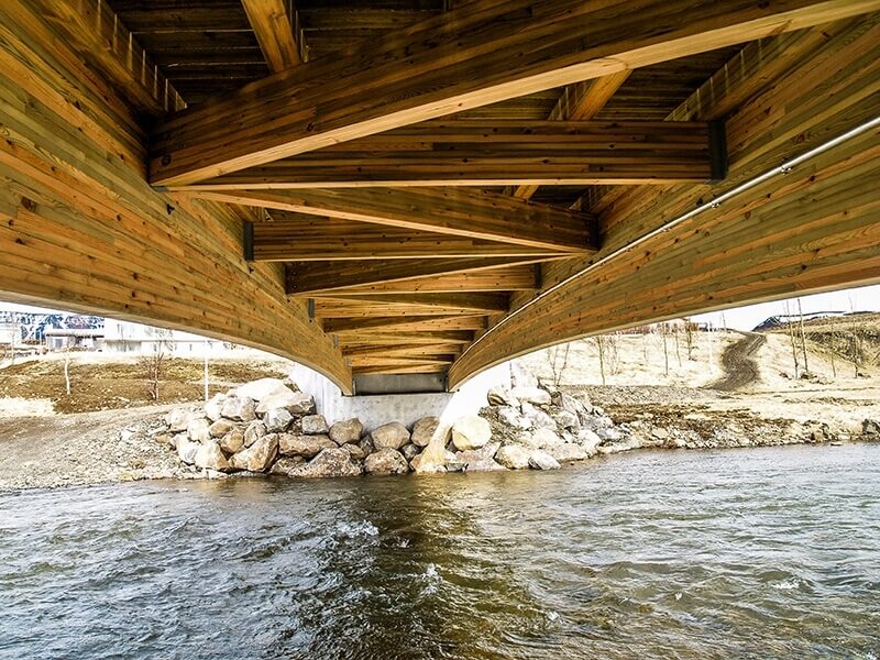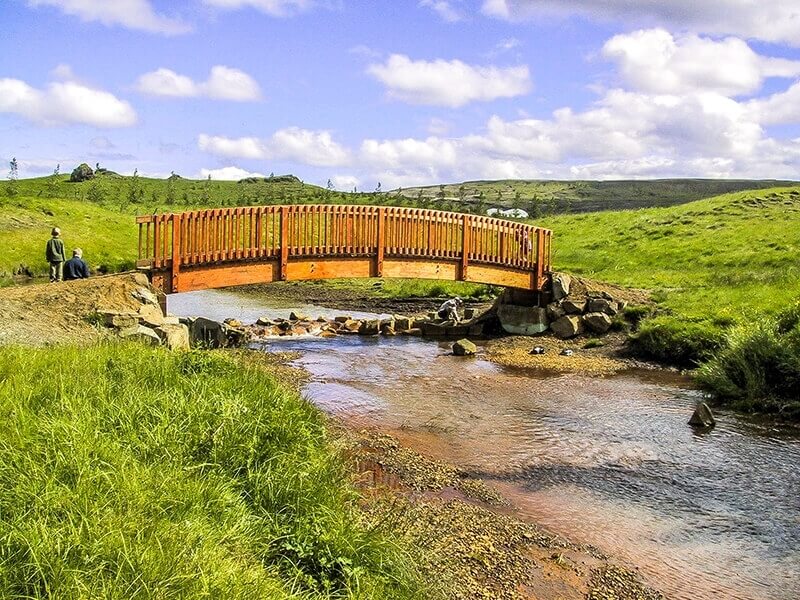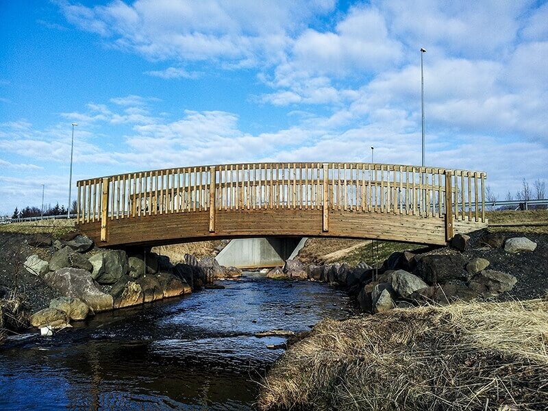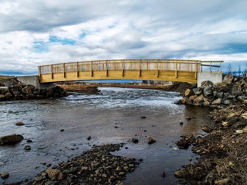 Brýr smíðaðar úr límtré eru endingargóð lausn og mikil prýði í fallegu landslagi. Brú úr náttúrulegu efni eins og límtré er einnig sterk og þolir vel íslenska veðráttu.